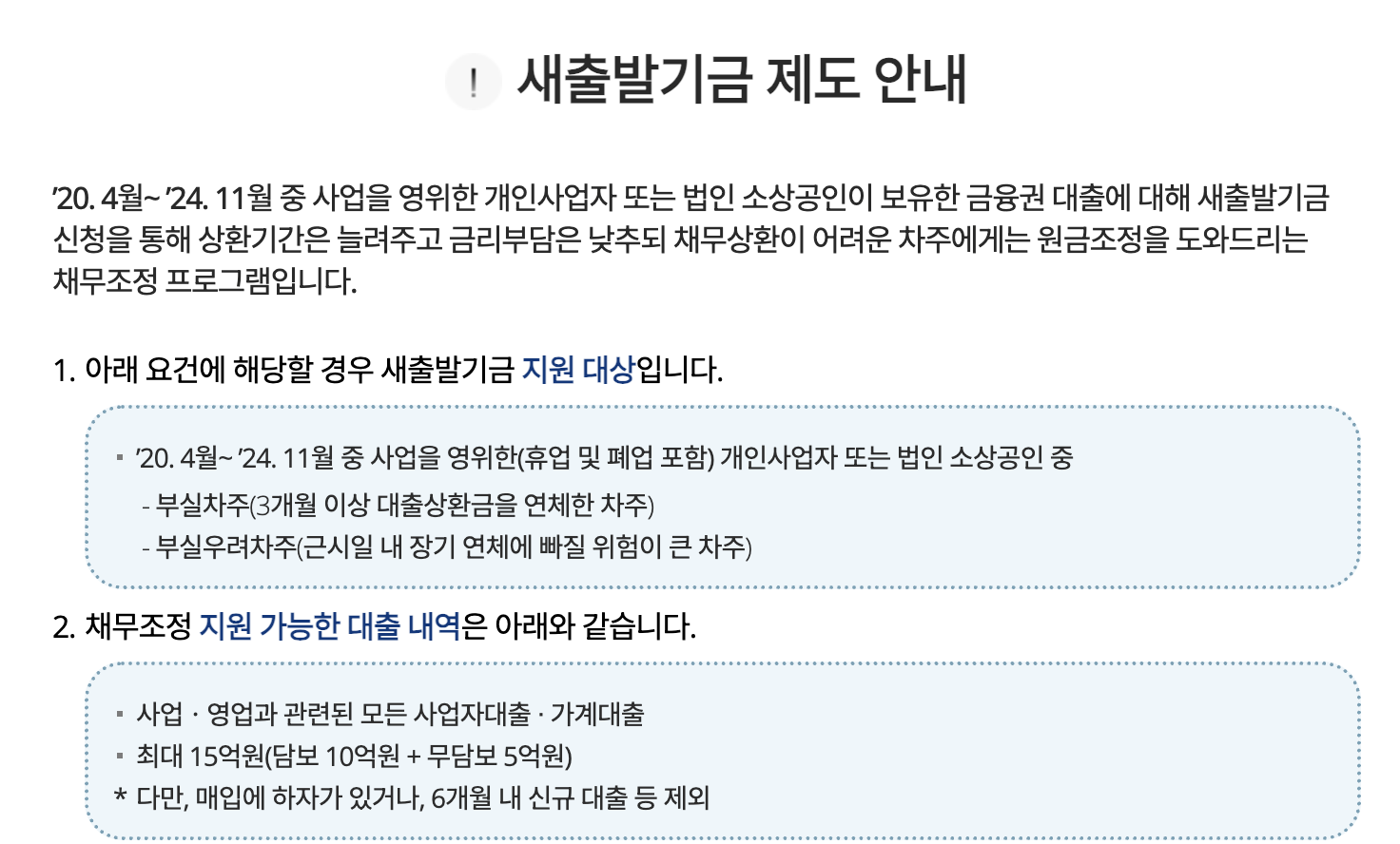 | 상환 유예 | 최대 1~3년간 원금 상환 유예 |